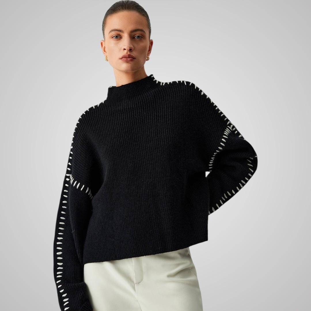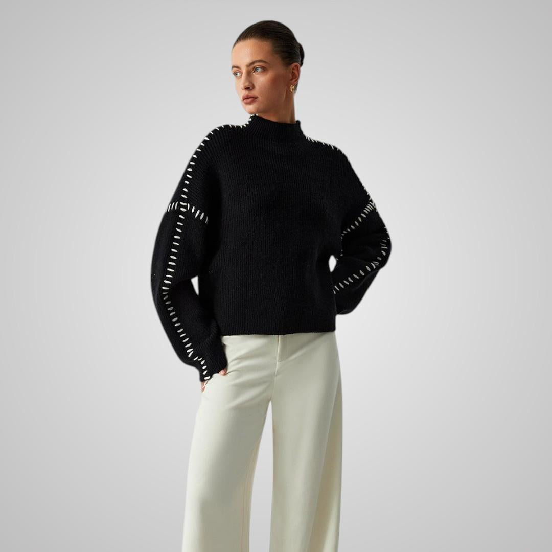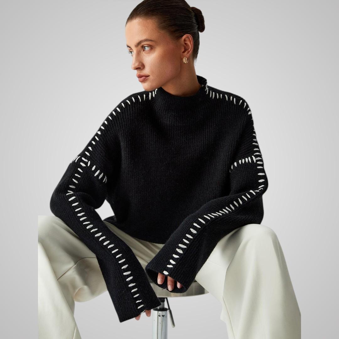 Vill du ha något varmt som ändå sticker ut? Elvira är tröjan som drar blickarna till sig utan att kännas för mycket. Den svarta basen med kontrastsömmar längs ärmarna skapar en trendig look du kan bära både till jobbet och på helgen. Ett stilval som känns genomtänkt.